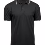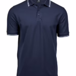 - Contrast tipped flat knit collar and cuffs with elastane.
